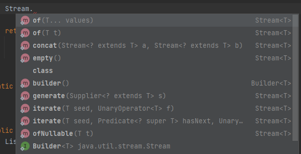 그 밖에도 직접적으로 스트림을 생성하는 다양한 방법이 있지만 위의 두 방법을 가장 많이 사용하는 것 같다. 이미 있는 배열이나 컬렉션에서 스트림을 생성, 사용하는 일이 많기 때문이다.
