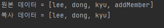 이처럼 원본 리스트와 복사 리스트를 가져온 뒤 데이터 변경을 발생시키고 원본이 어떻게 변화하는지 살펴볼 예정이다.