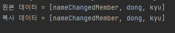 이처럼 새로운 ArrayList를 생성하며 인자로 원본 리스트를 담으면 원본 리스트와는 다른 참조를 갖는 리스트에 데이터가 담겨 반환된다. 이러면 복사된 리스트가 변형되어도 원본 리스트는 바뀌지 않는다.