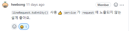 이렇게 설계한 이유는 LineRequest라는 Dto는 어떤 UI에 사용되는지에 따라, UI에서 넘겨주는 값이 바뀔 때마다 영향을 받는 UI 의존적인 Dto이기 때문에 비즈니스 로직을 처리하는 Service 레이어까지 침투하기를 원치 않았다.
