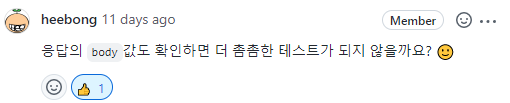하지만 인수 테스트에서도 응답 body를 확인하는 등 꼼꼼한 검증이 이루어져야 한다고 리뷰를 받고 생각했다.