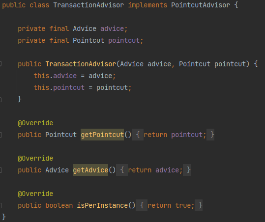 - 어드바이저(Advisor): 단순하게 하나의 포인트컷과 하나의 어드바이스를 가지고 있는 것