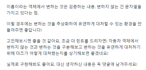 우테코 자동차 경주 미션 리뷰에서 리뷰어님은 이렇게 코멘트를 남겨주셨다.
